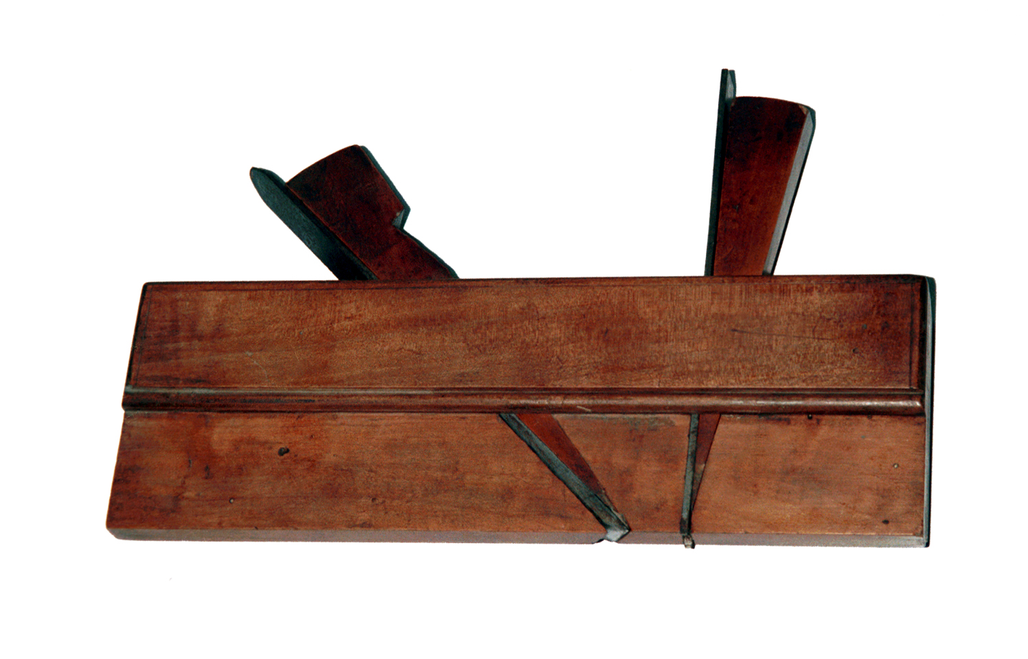 Ce rabot, destiné à pousser une rainure dans du bois de travers, a la particularité de posséder deux fers :