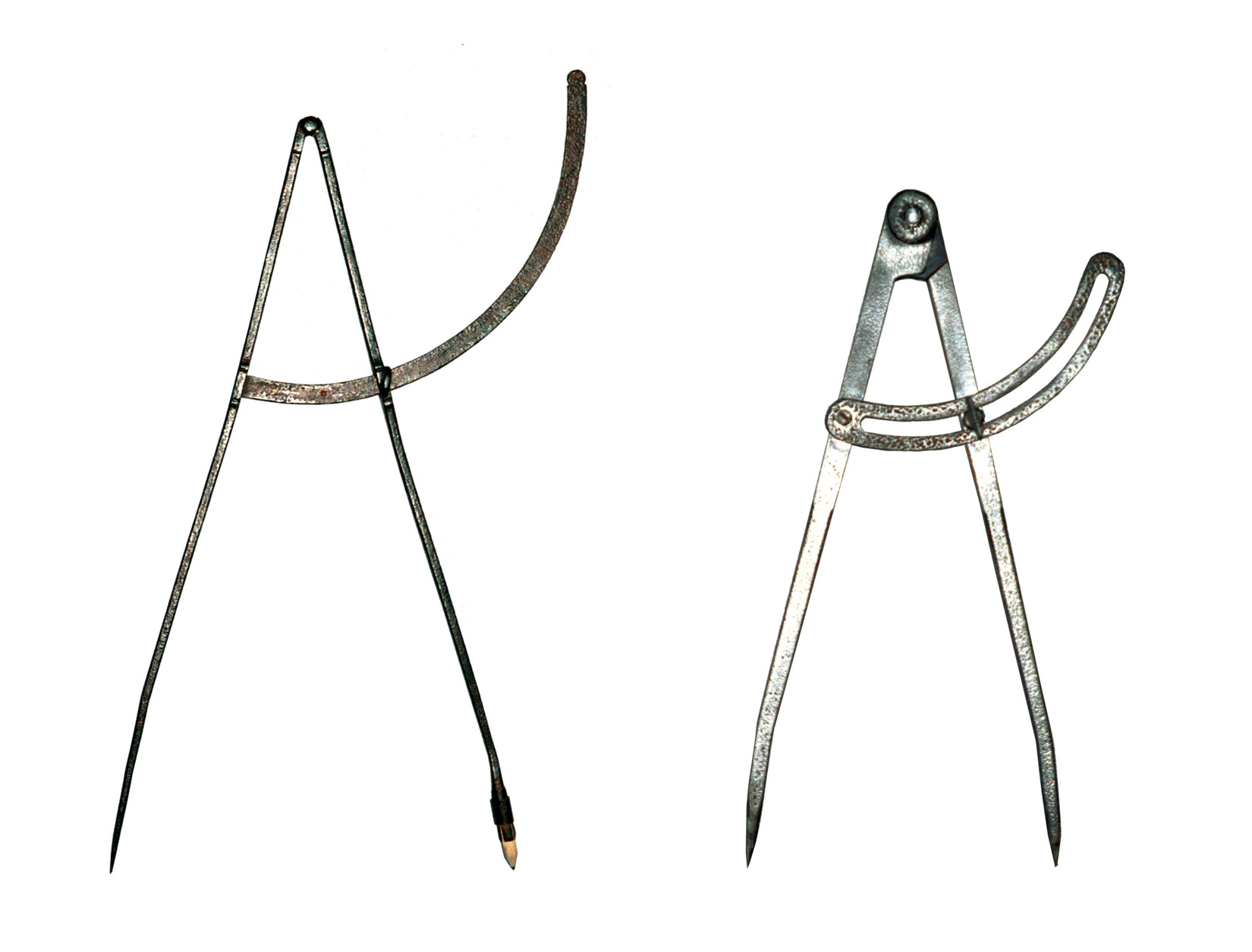 Les branches du compas de gauche mesurent 66 centimètres et celles du compas de droite 28 centimètres.