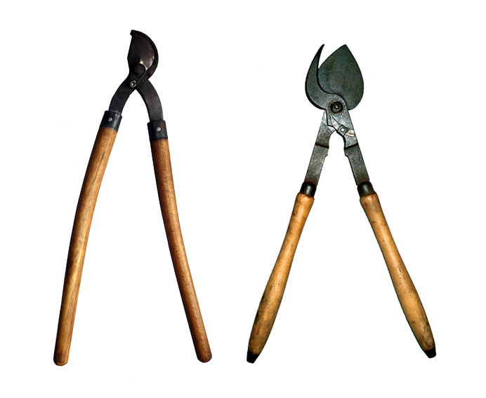 Le coupe-ceps, qui est aussi appelé sécateur à deux mains ou cisaille, est apparu à la fin du XIXème siècle. Grâce à son long emmanchement et à la robustesse de ses lames permettant une coupe rapide et aisée, il a remplacé la scie égoïne et la serpe à dos tranchant.
