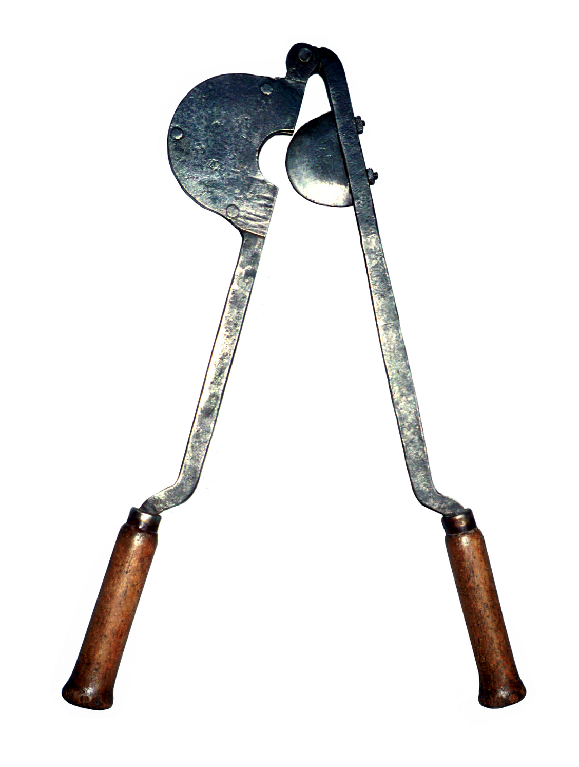 Il est constitué de deux grandes branches formant levier, pivotant autour d'un boulon placé à une de leurs extrémités. Proche de cet axe, un de ces bras est garni d'un fourreau servant d'appui à la queue et dans lequel s'encastre une lame tranchante en demi-lune, fixée à l'autre bras.