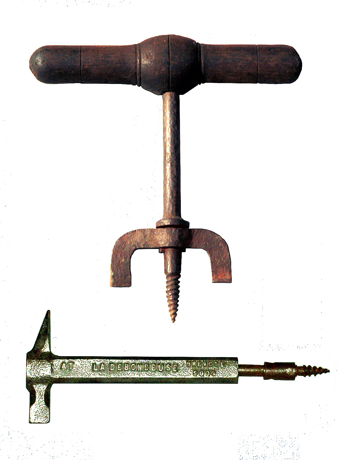 La débondeuse est une mèche à vis, coulissant dans une poignée massive avec buttée d'arrêt, faisant office de marteau. Une fois la vis dans la bonde, il suffit de soulever d'un coup sec cette poignée, pour enlever par contrecoup la bonde.