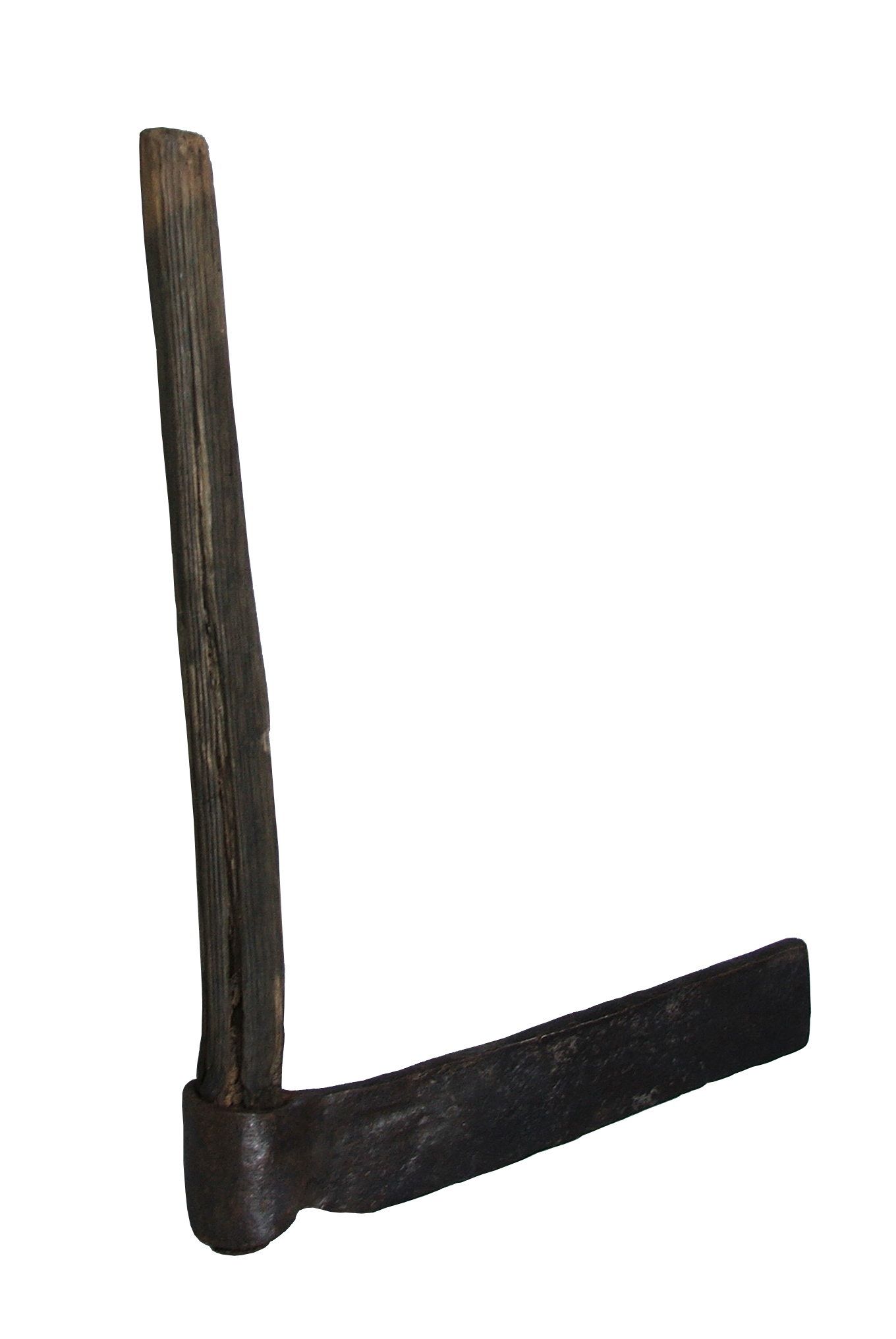 Le fer a un double biseau sur toute sa longueur ; sa section est celle d'un coin, le dos large et plat. La douille est tronconique et le manche, qui peut avoir de 30 à 90 centimètres, s'y enfile à la manière des pioches, de bas en haut.