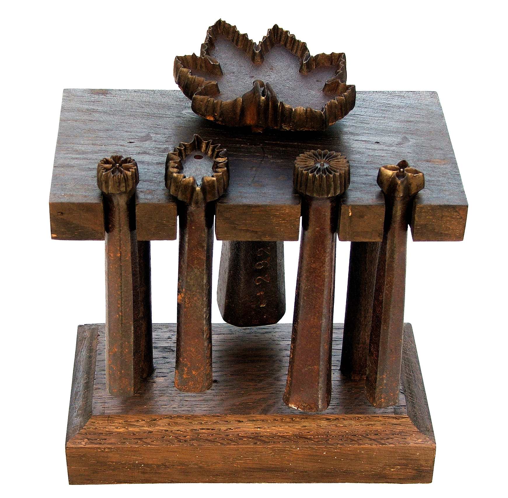 Emporte-pièce à tailler les fleurs artificielles : ces fers à frapper sont instruments destinés à découper les éléments entrant dans la confection de fleurs artificielles.
