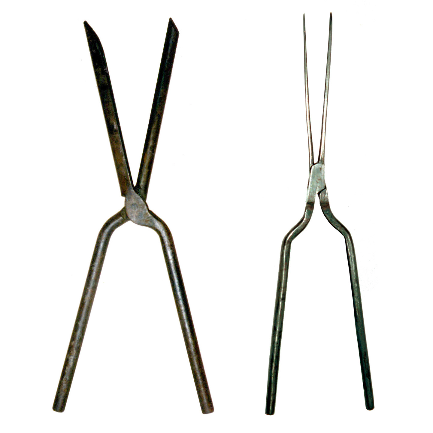 A gauche sur l'image : fer à friser les cheveux ; à droite : fer à friser les moustaches.