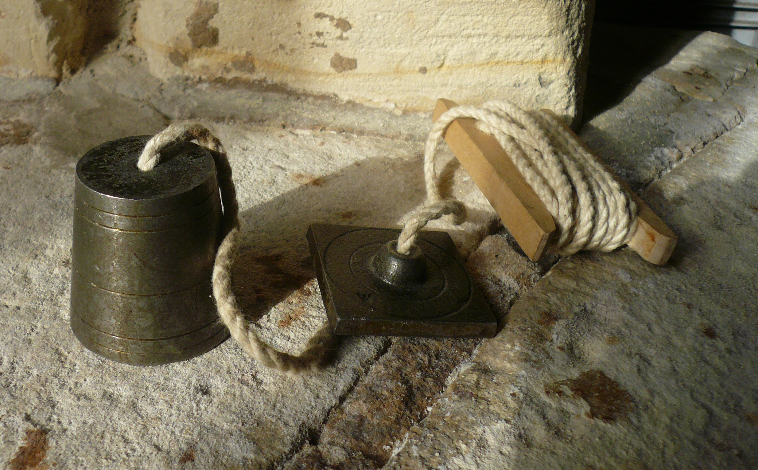 - d'une masse en pierre, acier, laiton, fer, fonte et... plomb, en forme de cône, de cylindre, de toupie
