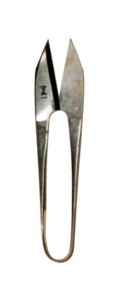 Cet instrument, qui mesure 10,5 centimètres, provient du Japon où il porte le nom de "itokiri ihasami", ce qui littéralement veut dire : fil coupé par des ciseaux, que l'on peut traduire par ciseaux à couper le fil.