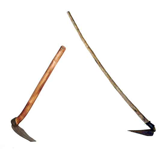La houe à vigne, dont le fer est un triangle allongé, est nommée bec de grue ou marre.