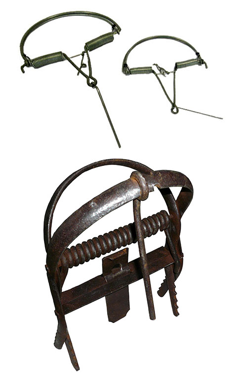 - pour les bêtes puantes : les assommoirs, chatières en bois, hameçons à ressorts, pièges à palette ou à engrenage, etc.