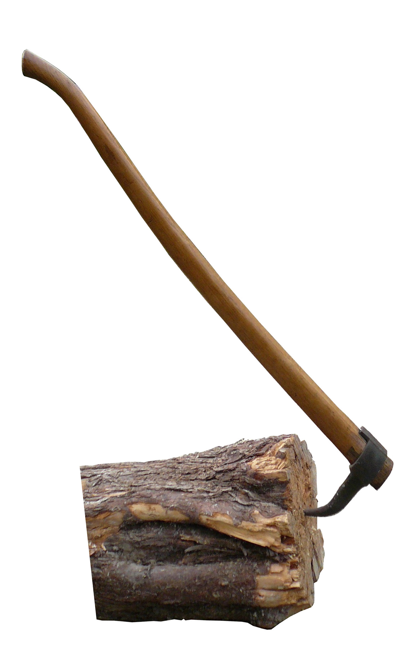 Comme ces outils sont essentiellement destinés à tirer les grumes, l'extrémité du long manche de 1,30 m est recourbée pour permettre une meilleure prise.