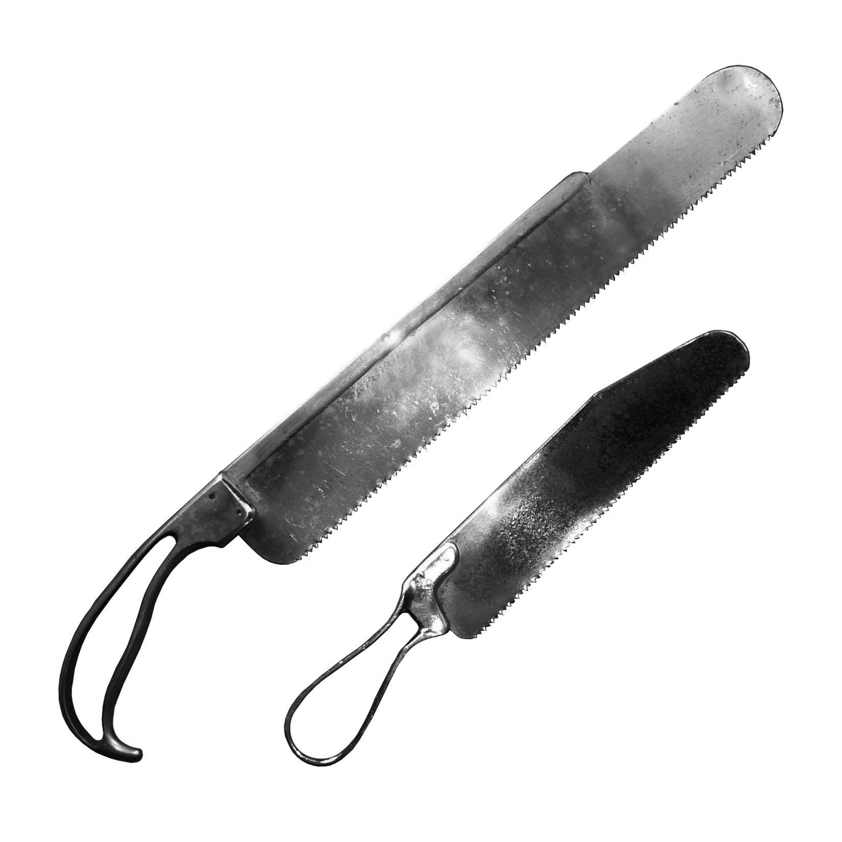 La scie du chirurgien est un instrument constitué par une lame d'acier dentelée et dont on se sert pour scier les os.